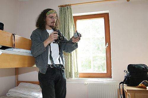 Ankunft in Buchenau. Uwe "Hammernocker" Rossberg bei der Vorbereitung seiner Panokugel.
